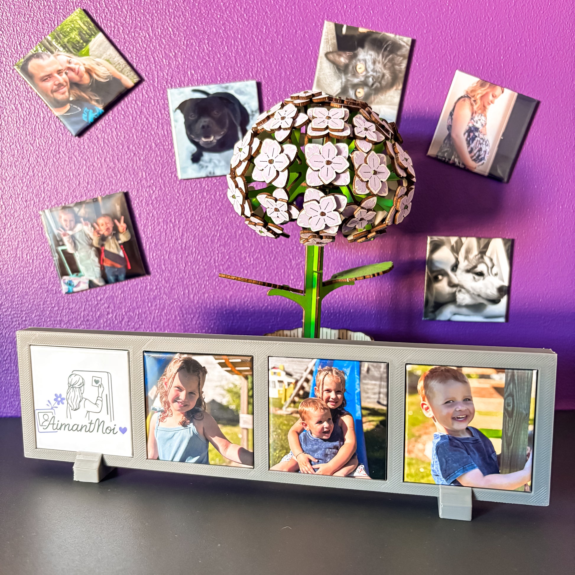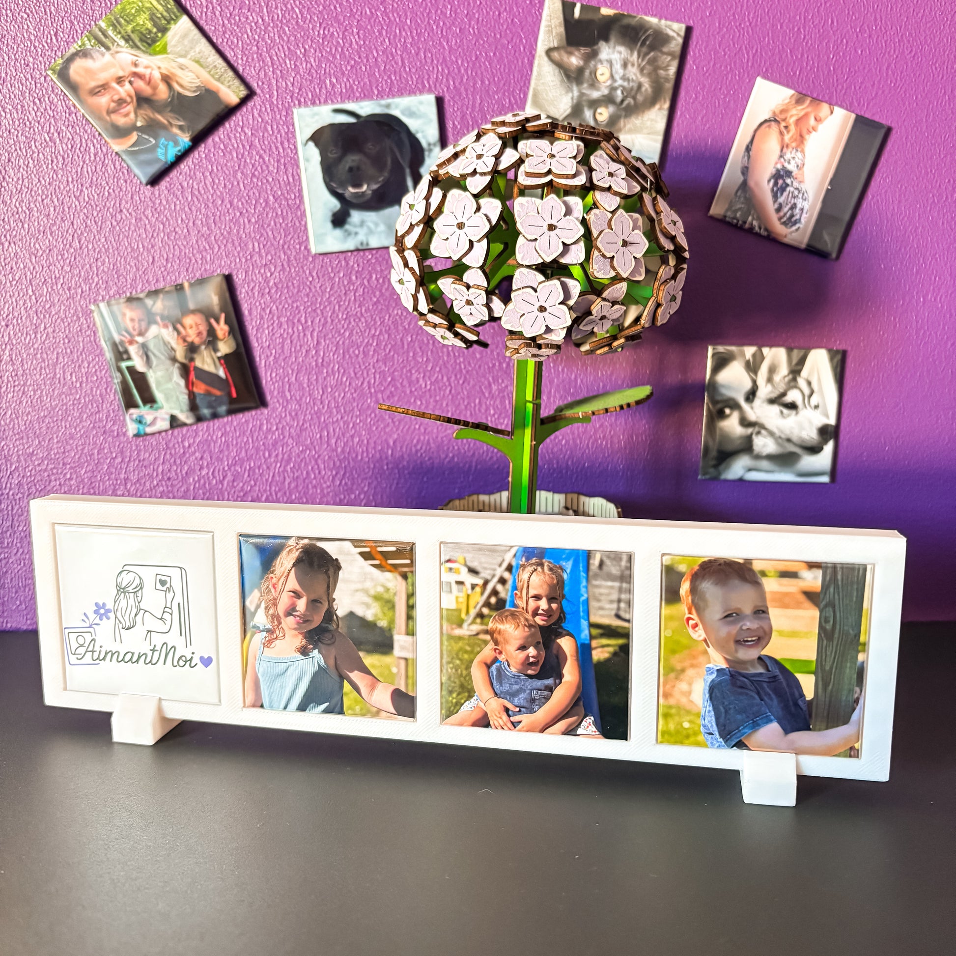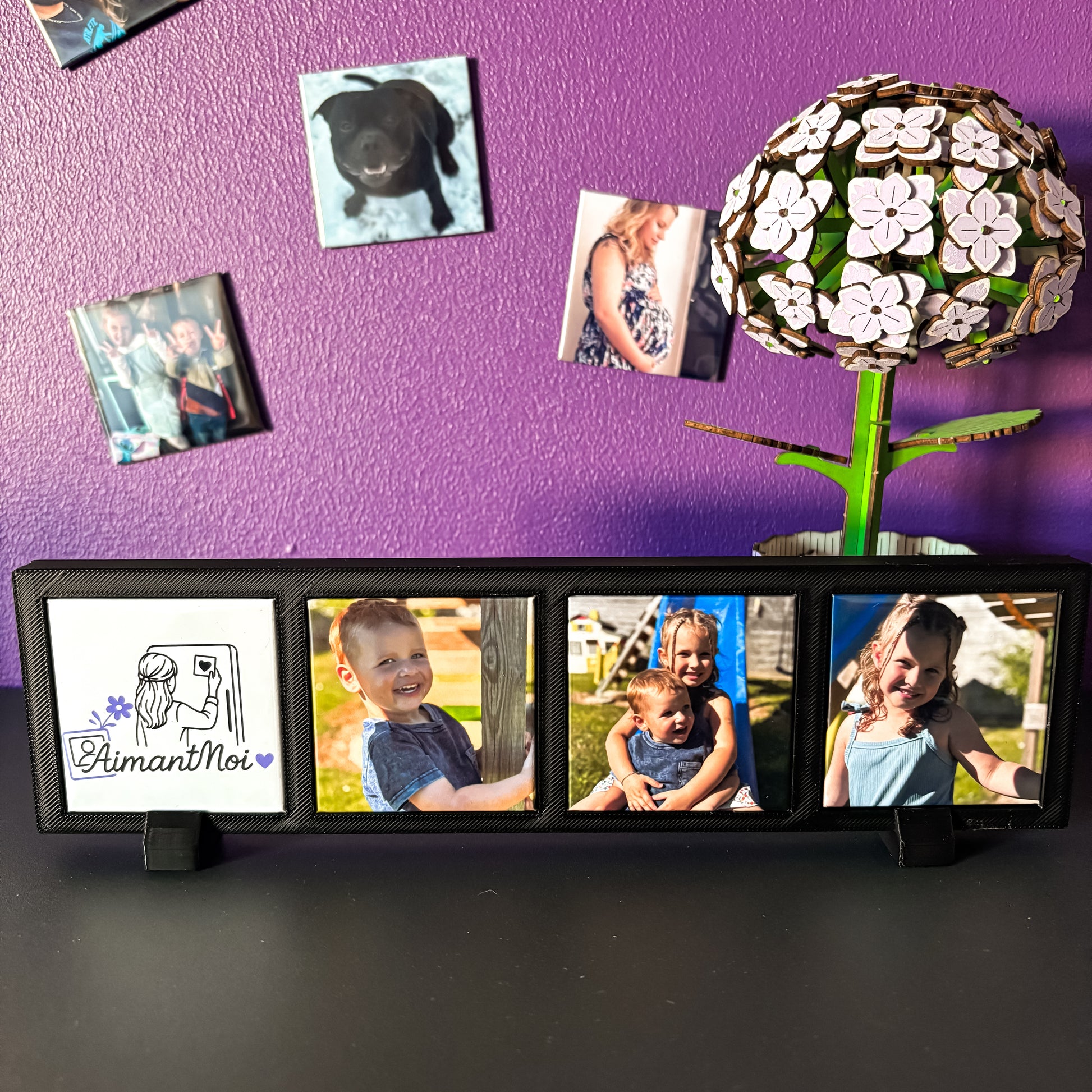 Mettez en valeur vos photos préférées grâce à notre cadre photo magnétique ! Conçu pour accueillir 4 aimants personnalisés, il devient un support élégant et pratique pour vos souvenirs.